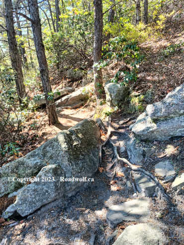 The first mile or so of the hike was a fairly steady 15% to 20% grade. The path was a simple trail like you would find in a local county forest. The incline wasn't horrible by any means, but the constant incline did require several stops to take breaks.