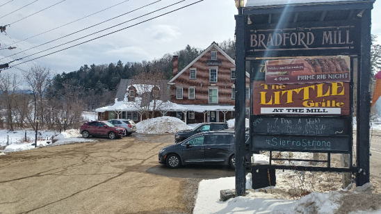 We continued onward and through Quechee, VT before heading towards Bradford, VT where we stopped at The Little Grille At The Mill. A very nice resturant beside a frozen stream and waterfall / dam.