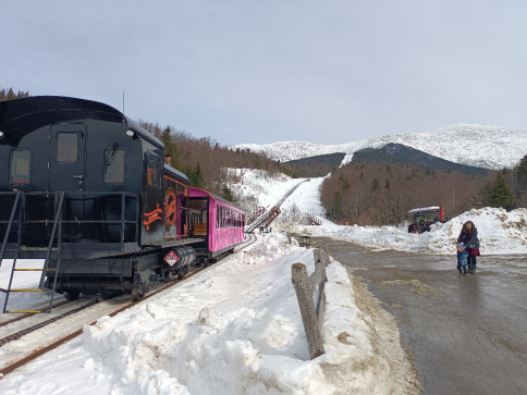 The next day we went to Mount Washington and rode the COG Railway about half way up which is as far as it goes in the winter. The track reached a grade of 34%, pictured below. It was an interesting ride at about 5 mph.